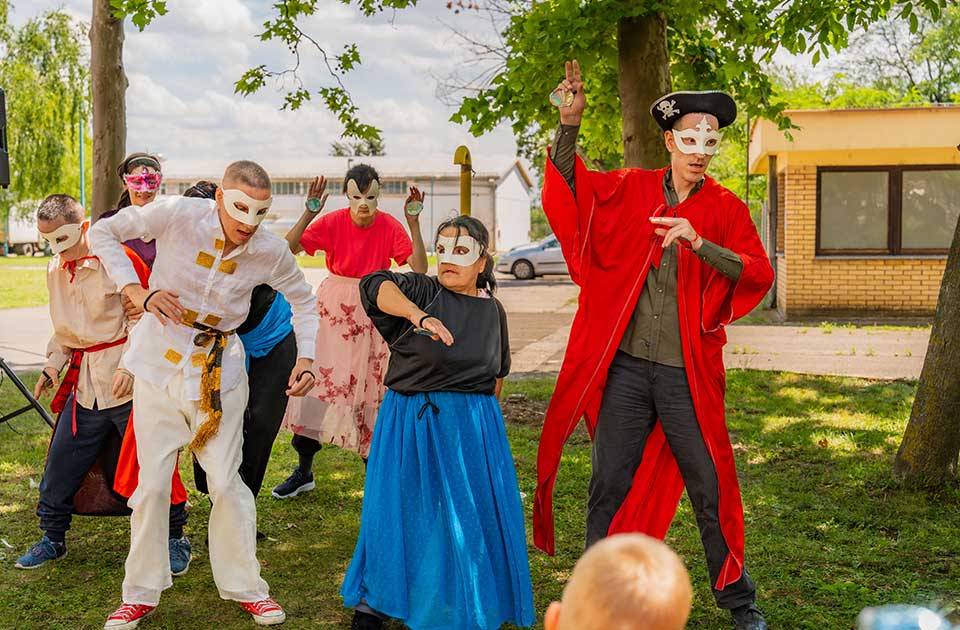Na kraju programa, glumci – amateri, štićenici Doma za smeštaj lica ometenih u razvoju, izveli su predstavu napravljenu po jedinstvenom modelu u svetu.