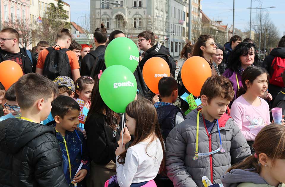 U šarenim ili rasparenim čarapama, u šetnju su krenuli đaci više gradskih osnovnih škola, kao i predstavnici lokalne samouprave i trgovinskog lanca Gomex.