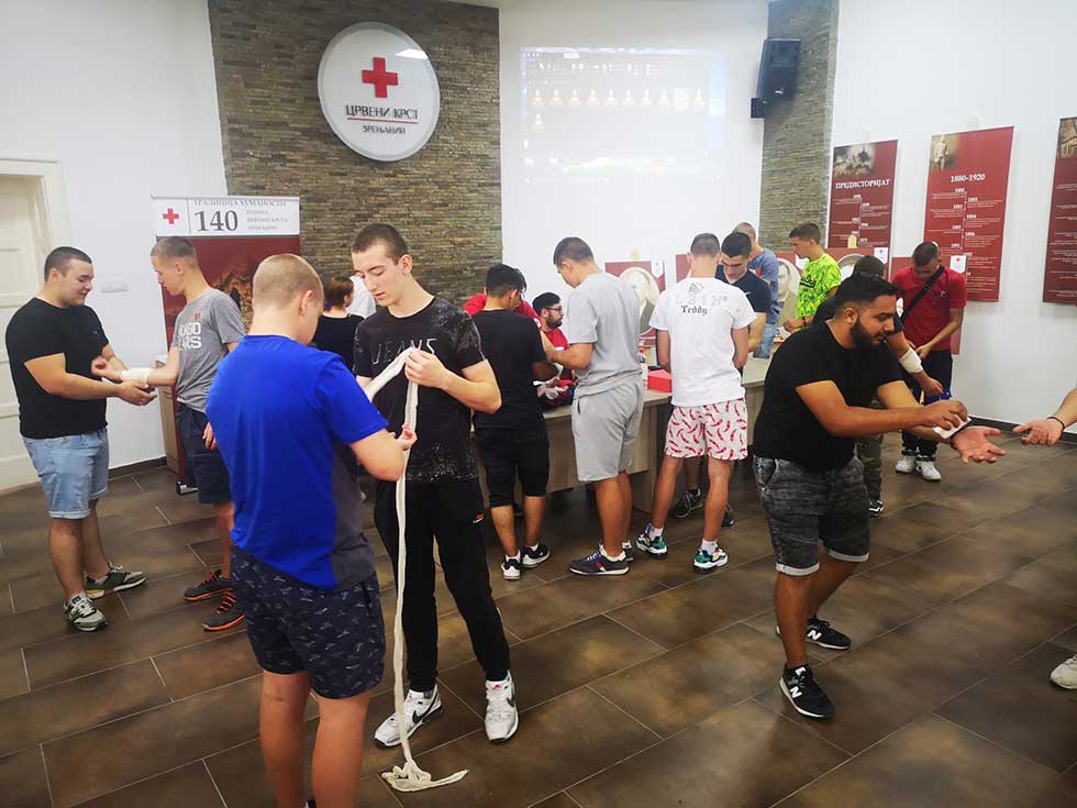 Crveni krst je saopštio da je u okviru obuke održano teorijsko predavanje. Zatim su prikazane i uvežbane tehnike prilaza povređenoj osobi, provera svesti i disanja, pregled povređenog, bočni koma položaj, KPR, zagušaj zalogajem, epileptični napad, zaustavljanje krvarenja i pneumotoraks.