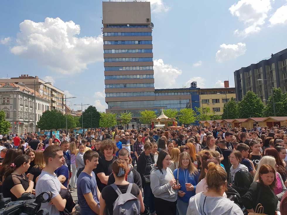 Veliki broj građana, učenika, njihovih nastavnika, profesora i roditelja, okupio se u podne, na centralnom gradskom trgu u Zrenjaninu, kako bi odao poštu nastradalima u školi na Vračaru.