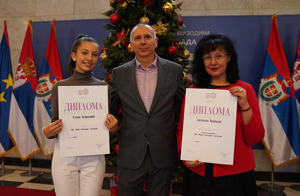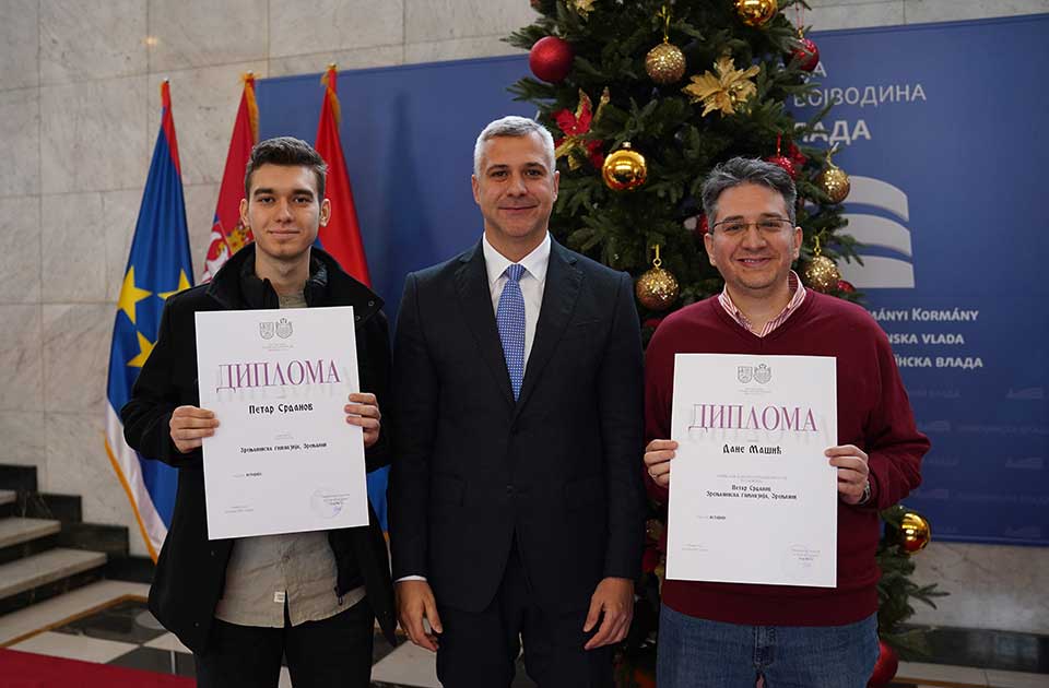 Za uspehe na takmičenjima iz matematike nagrađeni su Uroš Vuksanović iz Osnovne škole „Petar Petrović Njegoš“ i njegova nastavnica Slavka Gugleta, kao i učenik Zrenjaninske gimnazije Nikša Čvorović i njegova profesorica Biljana Goševski.
