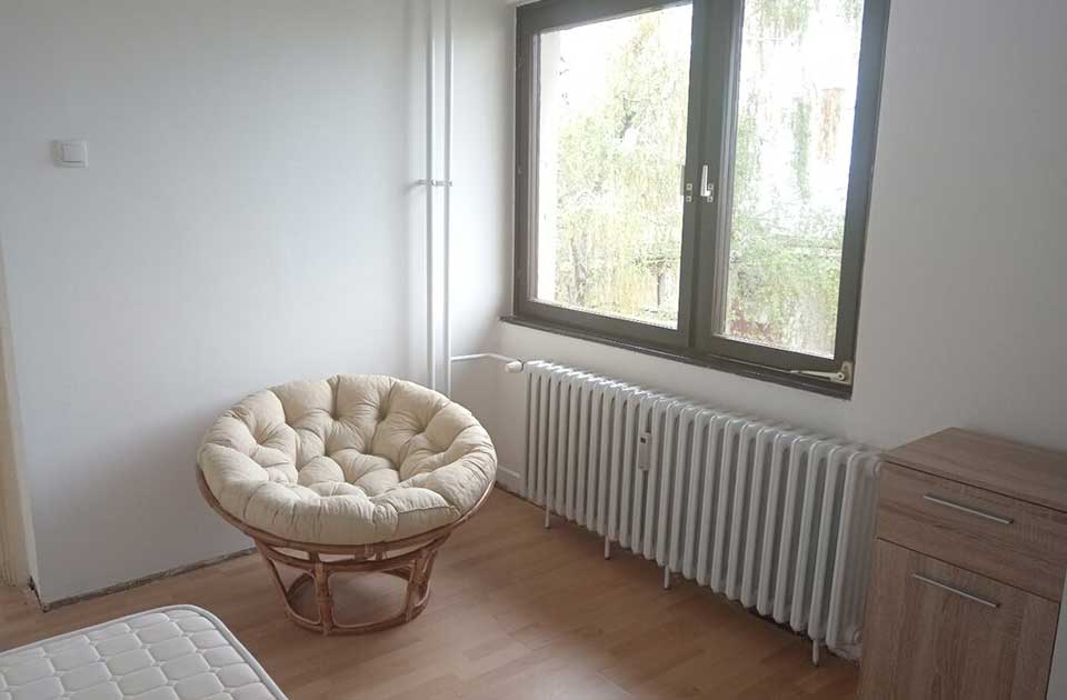 Stan od 37 kvadrata je kompletno renoviran. Nalazi se na petom spratu, u zgradi bez lifta. Sastoji se od dnevnog boravka sa trpezarijom, spavaće sobe, odvojene kuhinje i kupatila. Na podovima je laminat, spoljna stolarija je drvena, grejanje je gradsko sa ugrađenim kalorimetrima.