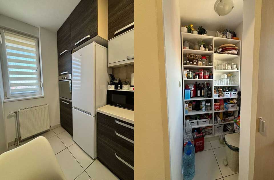 Raspored prostorija u stanu je lep i funkcionalan. Komforan dnevni boravak spojen je sa trpezarijom i ima izlaz na terasu. Kuhinja je sa ostavom, a tu su i hodnik, kupatilo i spavaća soba.
