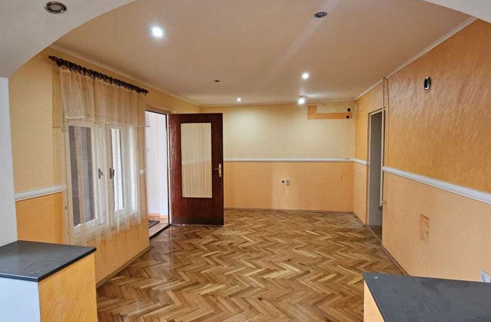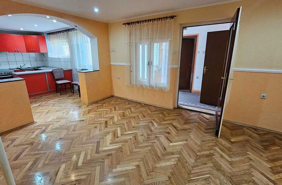 Prva je prizemna, trosobna, kompletno sređena kuća, uknjižena na 112 kvadratnih metara. U nastavku se nalazi spratna kuća osnove 94 kvadrata, koja je uknjižena kao prizemlje plus sprat. Spratnica je zamišljena kao dva zasebna trosobna stana, jedan u prizemlju, jedan na spratu.