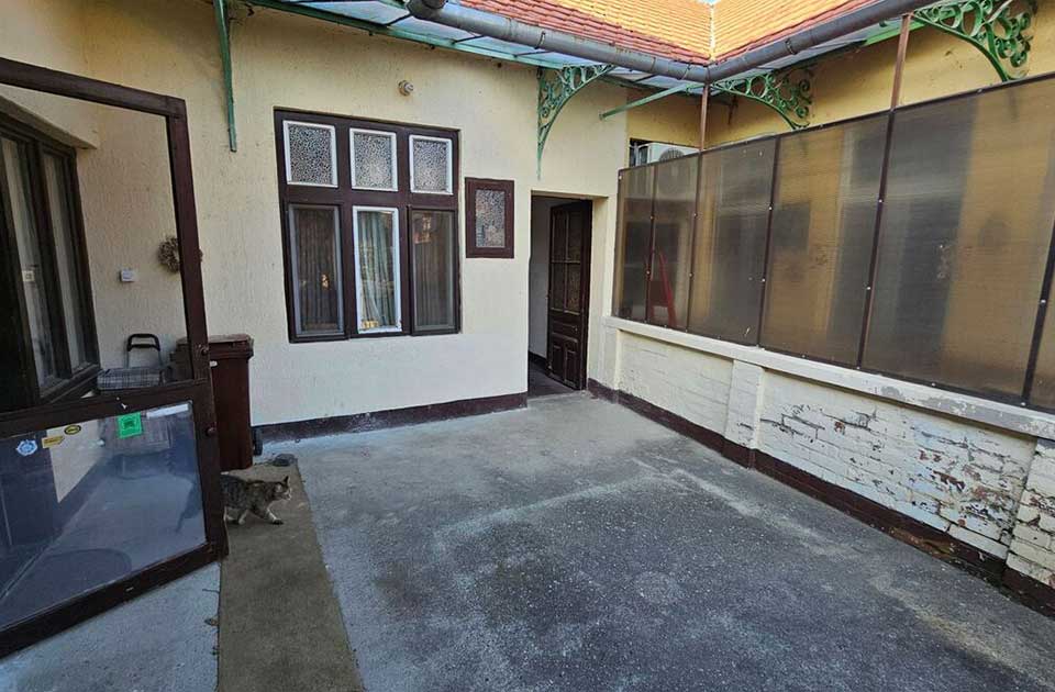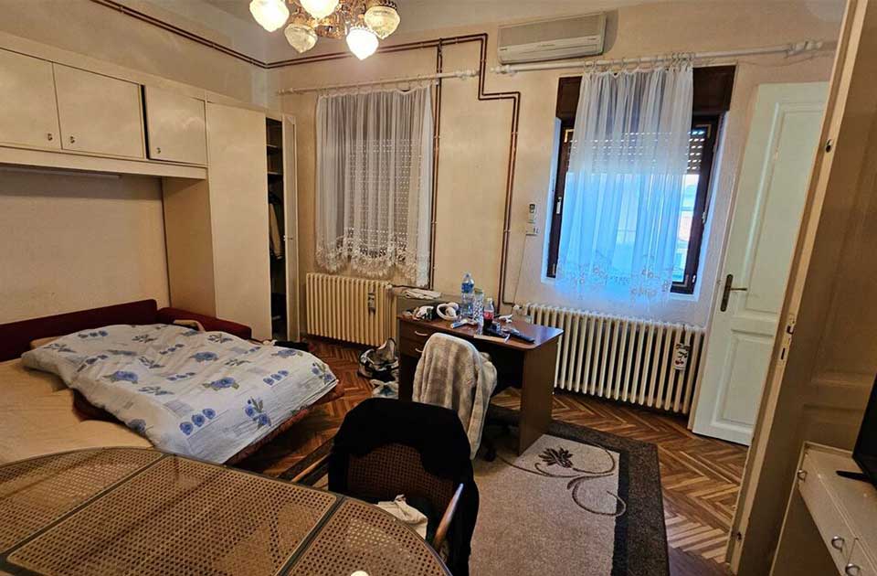 Kuća je salonskog tipa i u svom sastavu ima dva stana. Jedan stan je dvoiposoban, sa oko 90 kvadrata. Ima kuhinju sa trpezarijom i ostavom, iz dnevne sobe se ide u dve sobe koje su sa ulične strane. Ovaj stan ima svoje kupatilo.