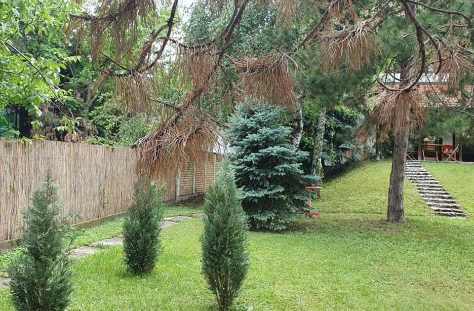 Kuća ima prelepo dvorište – pravu oazu zelenila.