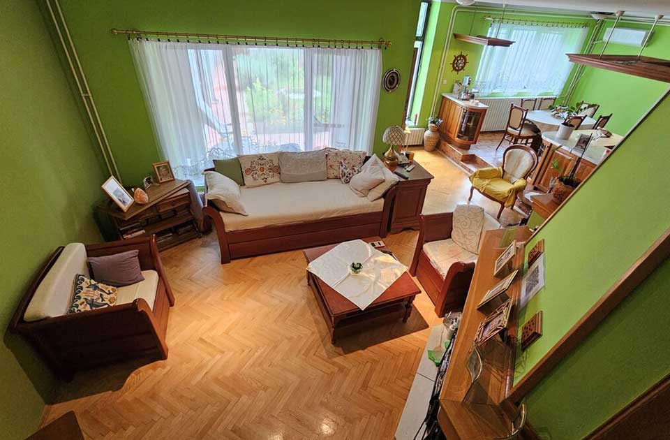 Stan se sastoji od dve etaže. Prizemlje je površine 178,47 kvadrata, a sprat 114,58 kvadrata.