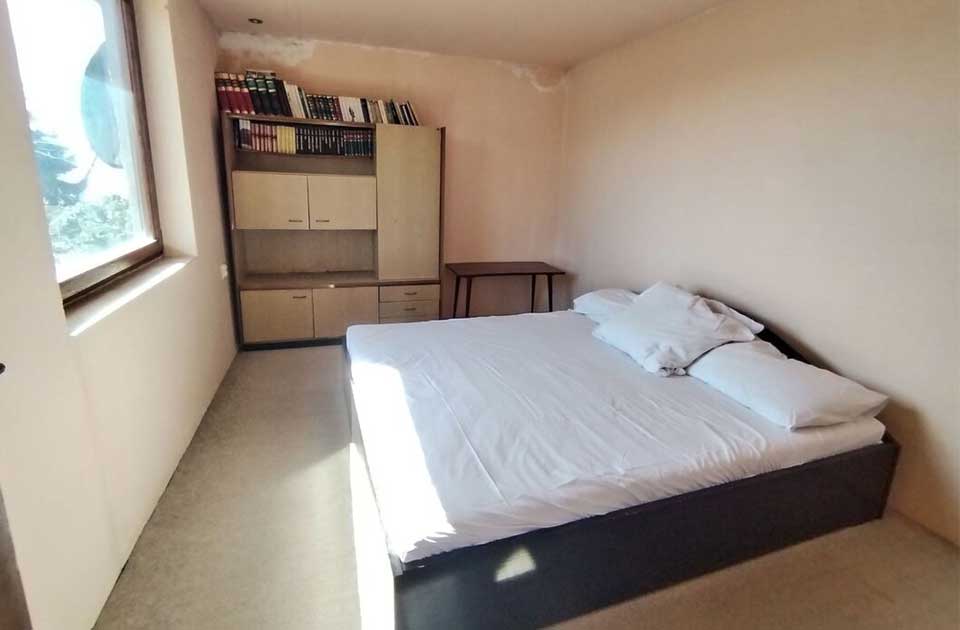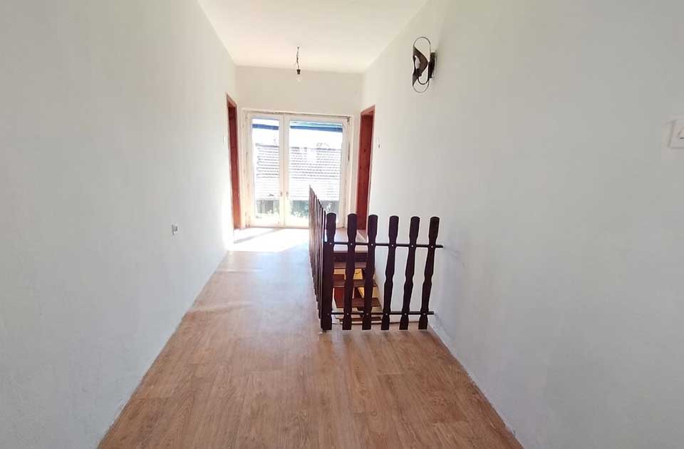 U prizemlju te kuće nalazi se komforan dnevni boravak spojen sa trpezarijom i kuhinjom, kupatilo i manja soba. Na spratu su tri spavaće sobe i kupatilo.