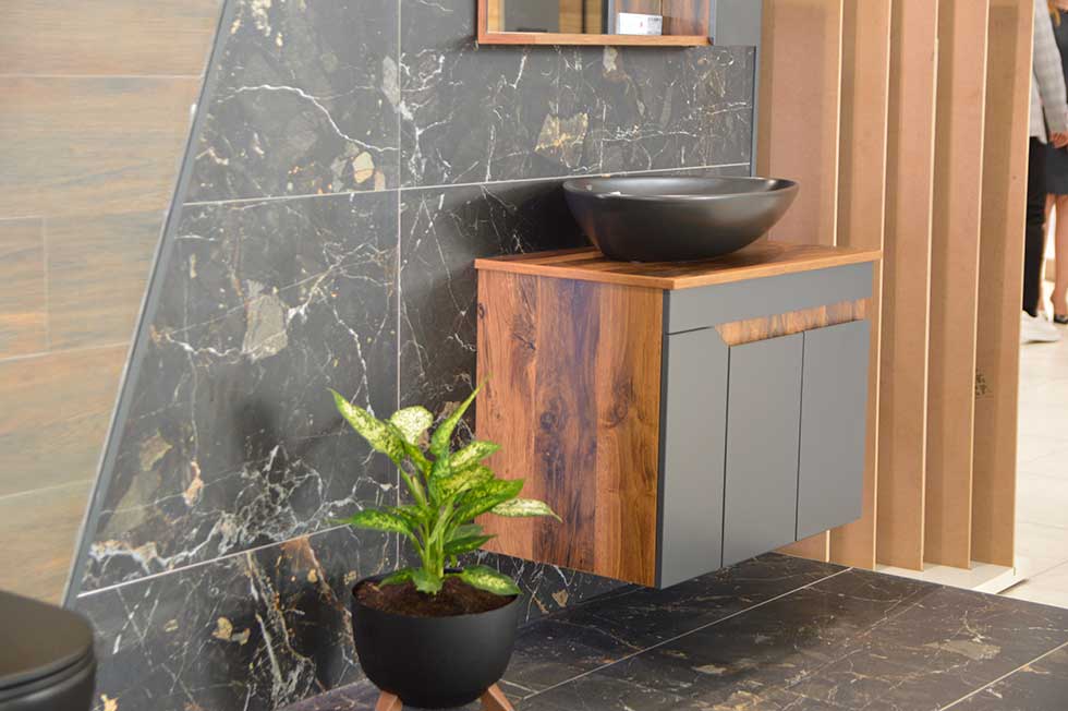 Dobro je poznato da u „Keramici Jovanović“ možete pronaći kupatilski nameštaj i tuš kabine/paravane pod okriljem ovog brenda, kao i artikle dopunjene savremenijim dizajnom. Oni predstavljaju ključne elemente pri opremanju modernih i funkcionalnih kupatila. Izdvojili bismo kombinacije drveta i metalnih delova u crnoj boji, a ovakvi elementi čine veći deo noviteta u asortimanu.