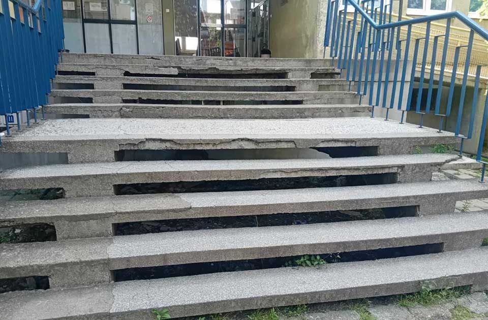 – Šaljem vam ove slike stepeništa kod Školskog dispanzera, kojim svakodnevno prolaze deca i trudnice, s pitanjem – dokle će se tolerisati nebriga o bezbednosti sugrađana – napisala nam je jedna čitateljka i sugrađanka.