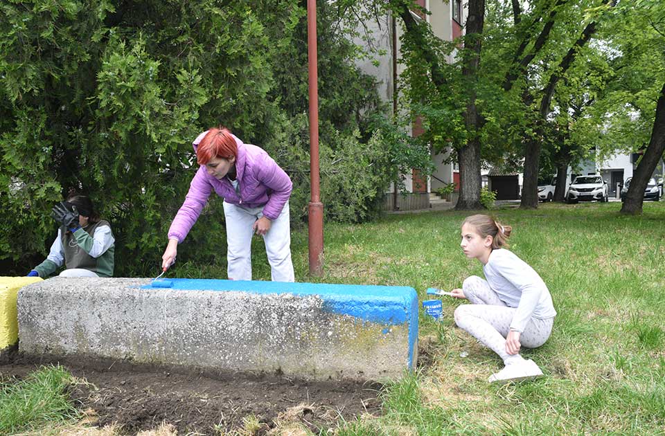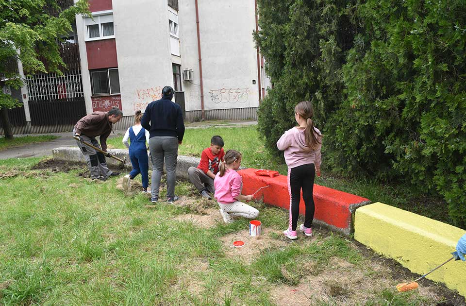 Kao i na prethodnim lokacijama, dečje igralište je očišćeno, popravljena su sedala na ljuljaškama i klackalicama, metalne i betonske konstrukcije su ofarbane, tereni su očišćeni od trave i odneto je smeće.