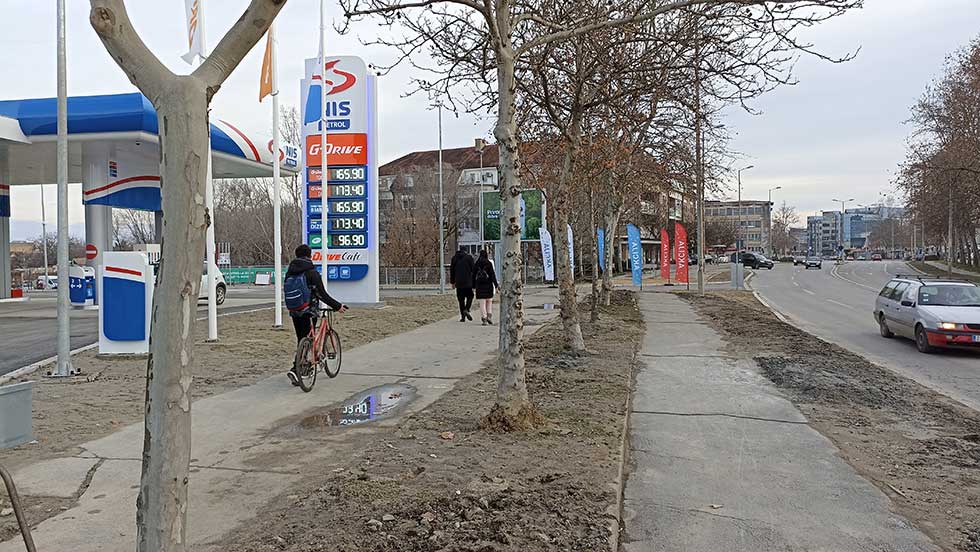 Zbog nove NIS-ove benzinske stanice na Bulevaru Milutina Milankovića u Zrenjaninu presečena je biciklistička staza.