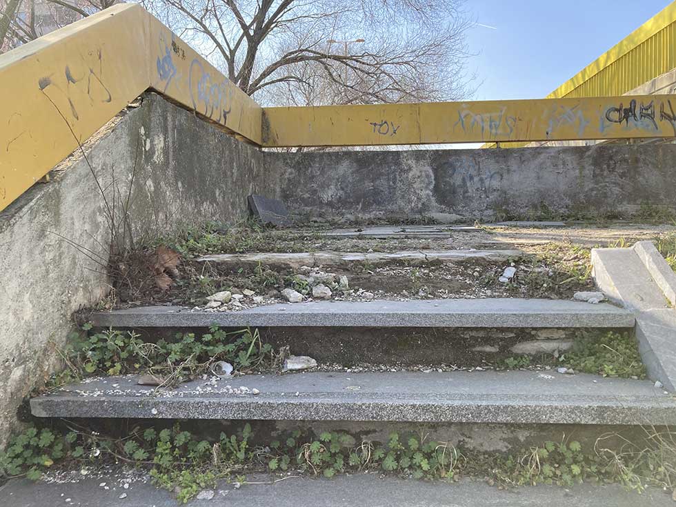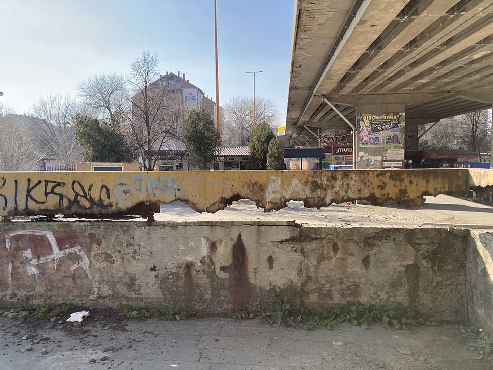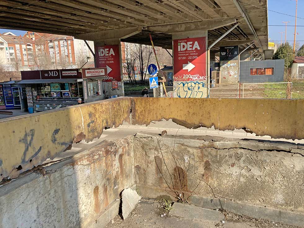 Armatura koja viri iz oštećenih zidova, zarđale i uništene metalne ograde, polomljene stepenice zarasle u travu i korov, prljavi zidovi… To je samo deo slike koju već duže vreme možemo da zateknemo u ovom delu grada.