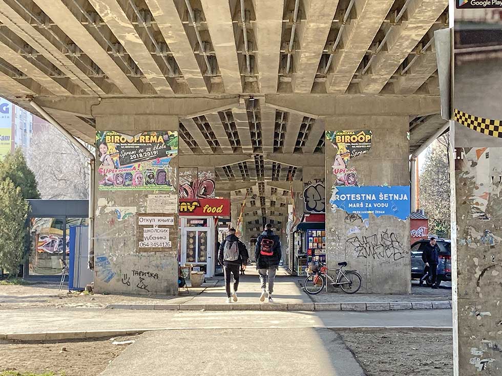 Ispod nadvožnjaka svakodnevno prolazi i veliki broj pešaka i biciklista, a ovde se nalazi i nekoliko manjih prodajnih objekata.
