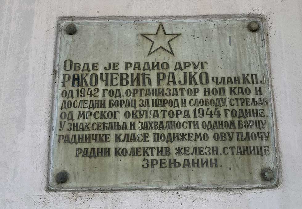 Na drugoj tabli piše da je na zrenjaninskoj železnici radio član KPJ, drug Rajko Rakočević.