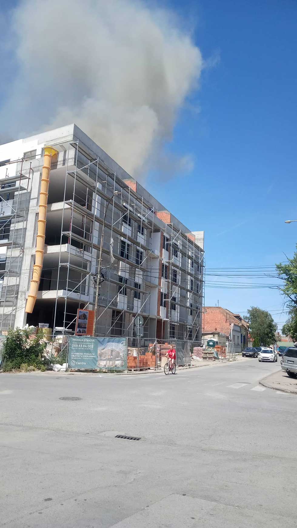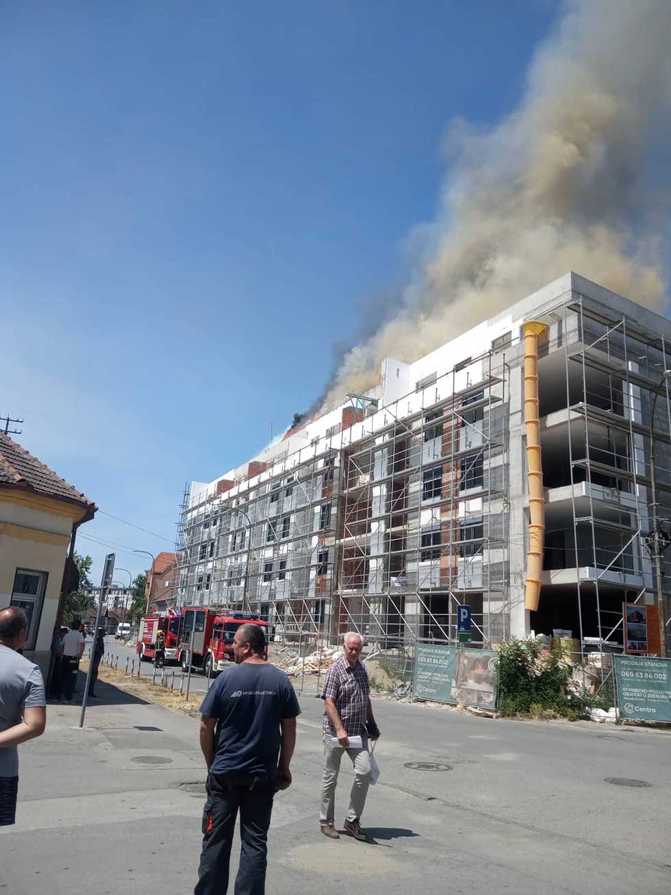 Na vrhu nove stambene zgrade, koja se gradi na uglu ulica Ive Lole Ribara i Petefijeve, danas je izbio požar, a vatrogasci se nalaze na terenu.