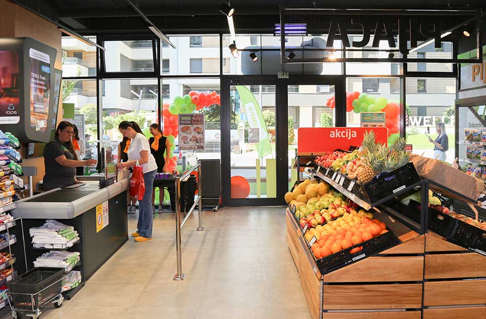 Kupcima je na raspolaganju sve što im je potrebno za svakodnevnu nabavku – pregledno raspoređeni proizvodi, osvetljen i organizovan prostor, kao i ljubazno osoblje koje će rado pomoći.