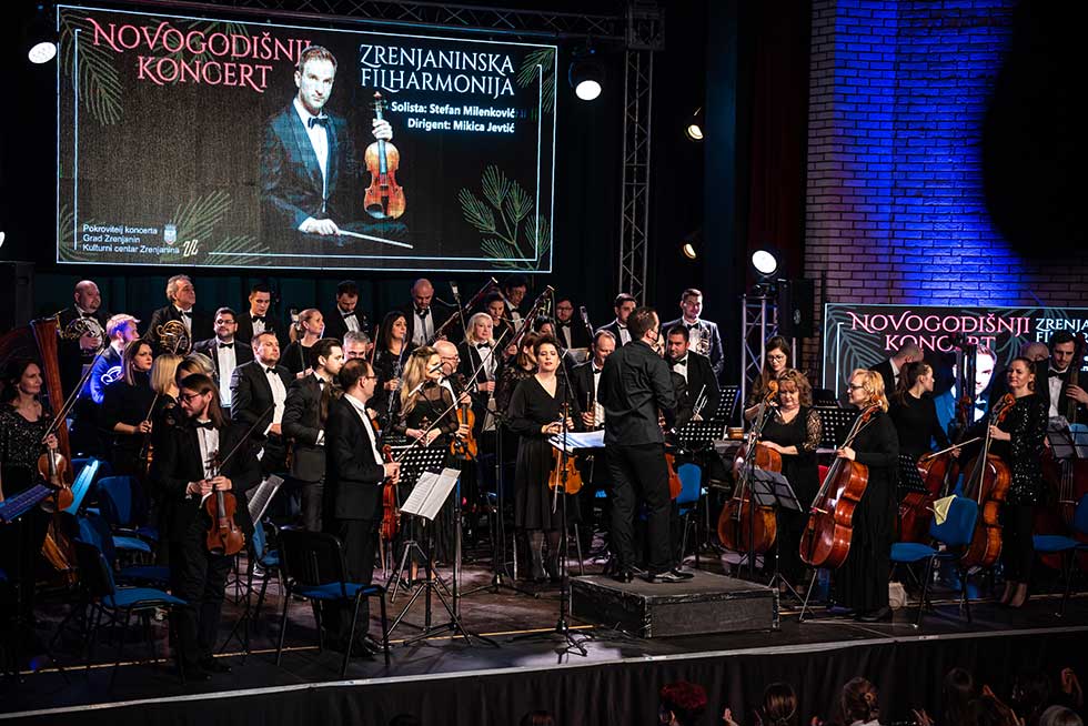 Stefan Milenković i Zrenjaninska filharmonija sinoć su nastupili pod dirigentskom palicom Mikice Jevtića. Jevtić je pojasnio da su numere koje su izvedene ciljano birane za novogodišnji program.