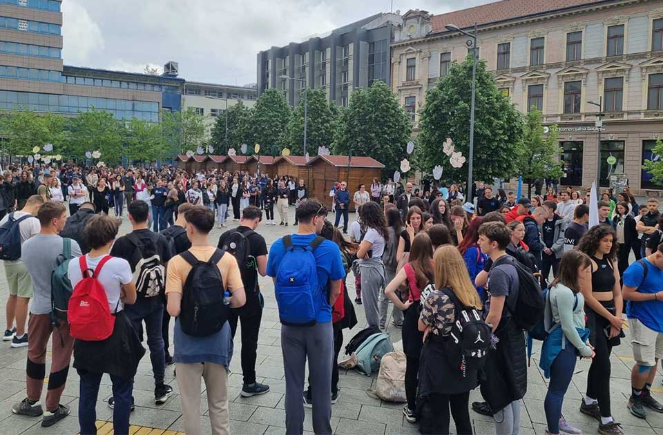 Srednjoškolce su na Trgu slobode ispratili roditelji, drugari i sugrađani.
