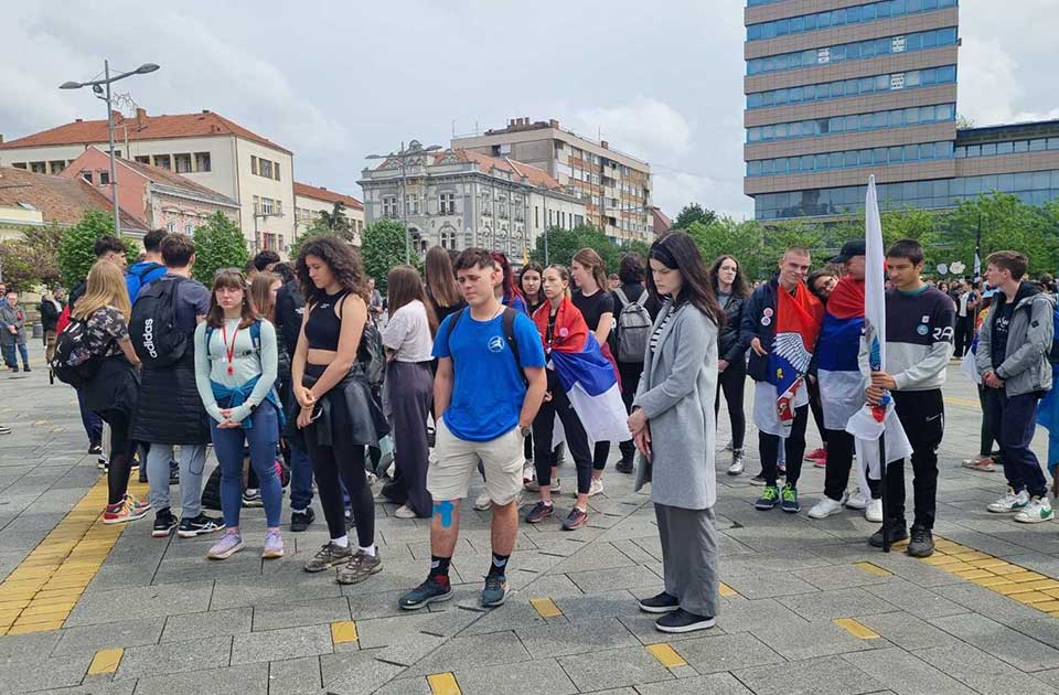 Gimnazijalci planiraju da pešače od Zrenjanina do Novog Sada. Oni su na ovaj put krenuli nešto posle podneva, nakon 16 minuta tišine za žrtve pada nadstrešnice na novosadskoj Železničkoj stanici.