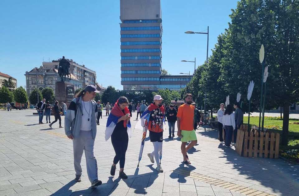 Studenti iz Zrenjanina, Valjeva, Užica i drugih gradova krenuli su jutros sa zrenjaninskog Trga slobode u protestnu šetnju do Subotice.