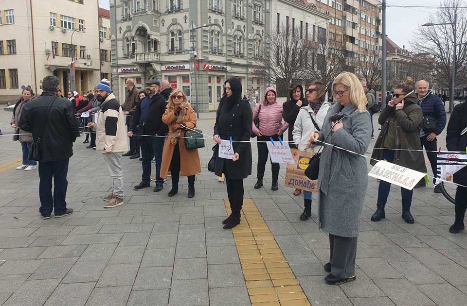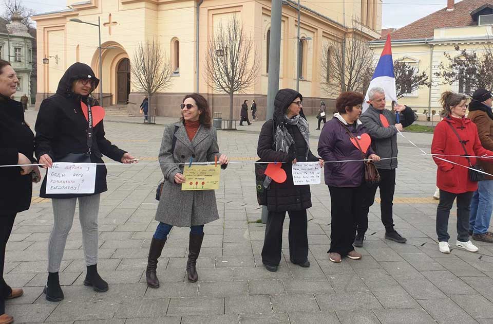 Predstavnici ustanova kulture i prosvetni radnici izveli su danas performans na Trgu slobode u Zrenjaninu.