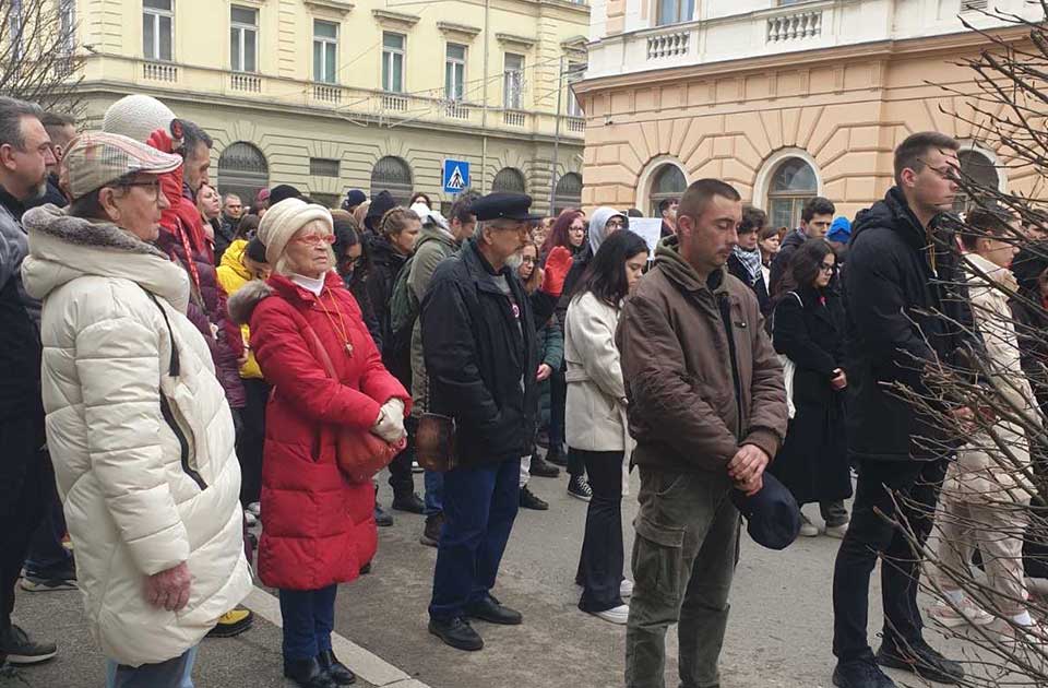 Nakon petnaestominutne tišine, okupljenima se obratio profesor Dušan Bojanić koji im je poručio da su u ovom trenutku heroji ulica i ponos svojih roditelja.