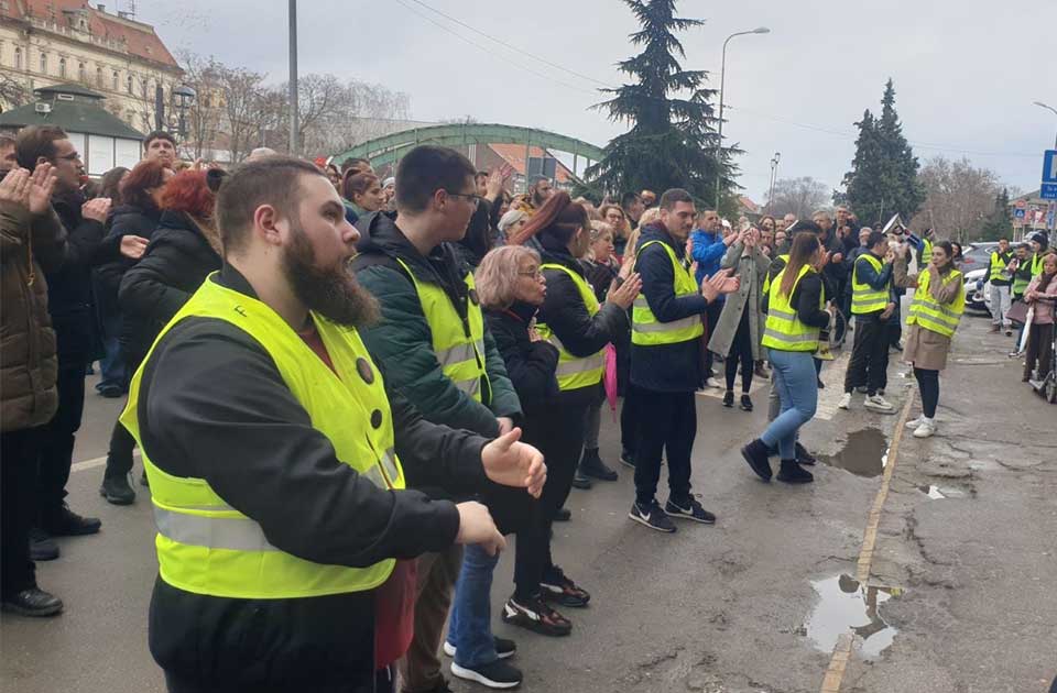 Deo Zrenjaninaca, predvođenih studentima Tehničkog fakulteta „Mihajlo Pupin“, okupio se na Žitnom trgu, nakon čega je usledila protestna šetnja do glavnog gradskog trga.