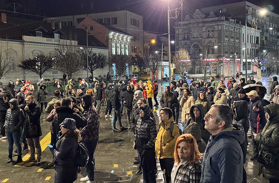 Sinoćnji protestni skup na glavnom gradskom trgu u Zrenjaninu počeo je četvorominutnom tišinom.