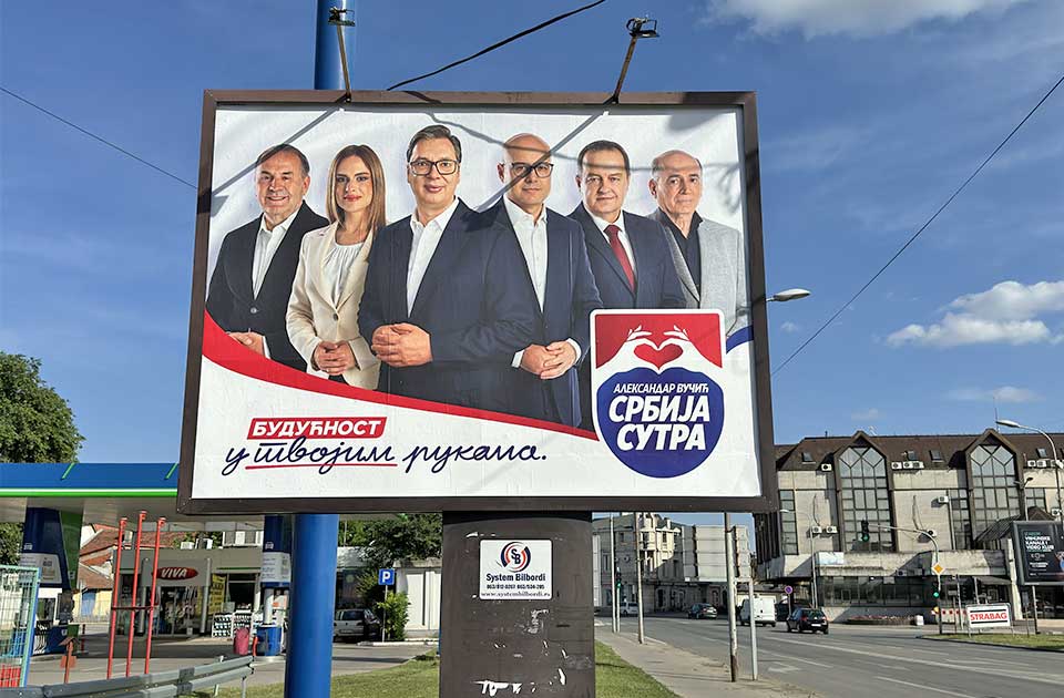 Na svim bilbordima, naime, dominira lik aktuelnog predsednika Srbije Aleksandra Vučića. Na nekima je on sam, a na nekima sa premijerom Srbije i predsednikom Srpske napredne stranke Milošem Vučevićem, zatim liderom socijalista Ivicom Dačićem, ali i sa predsednicom Srpske stranke Zavetnici Milicom Đurđević Stamenkovski, koja je dojuče optuživala vlast za izdaju Kosova, a vlast nju da je „Milica lažljivica“.