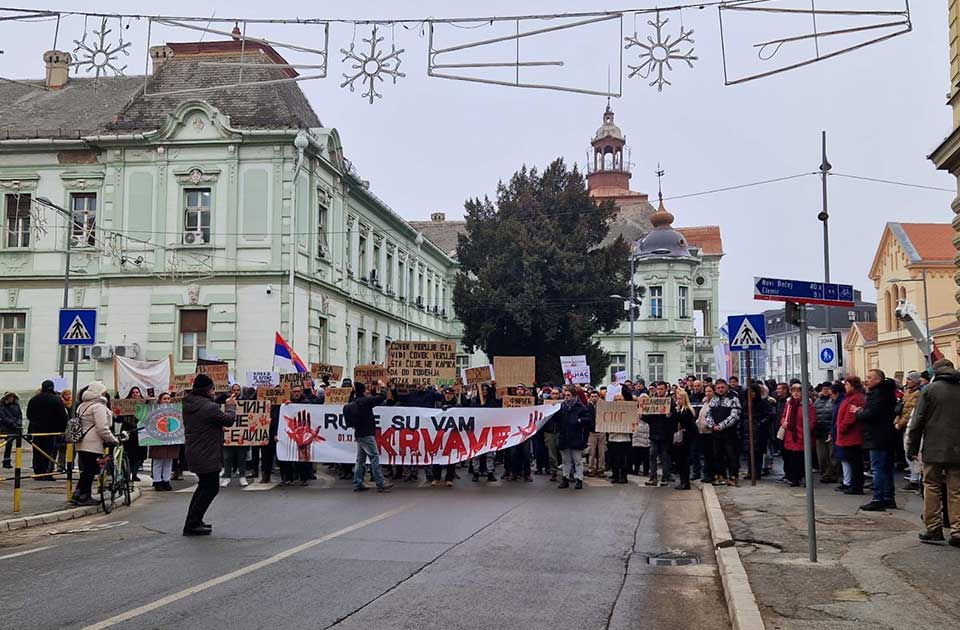 Učesnici protesta okupili su se na Žitnom trgu u Zrenjaninu, da bi zatim u koloni prošetali centrom grada.