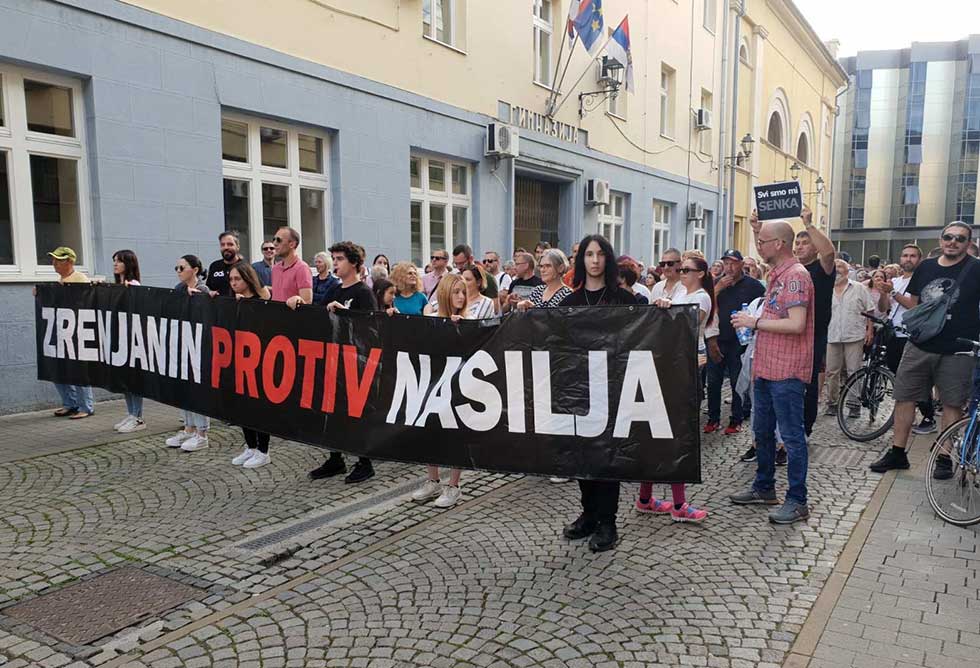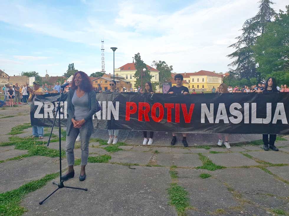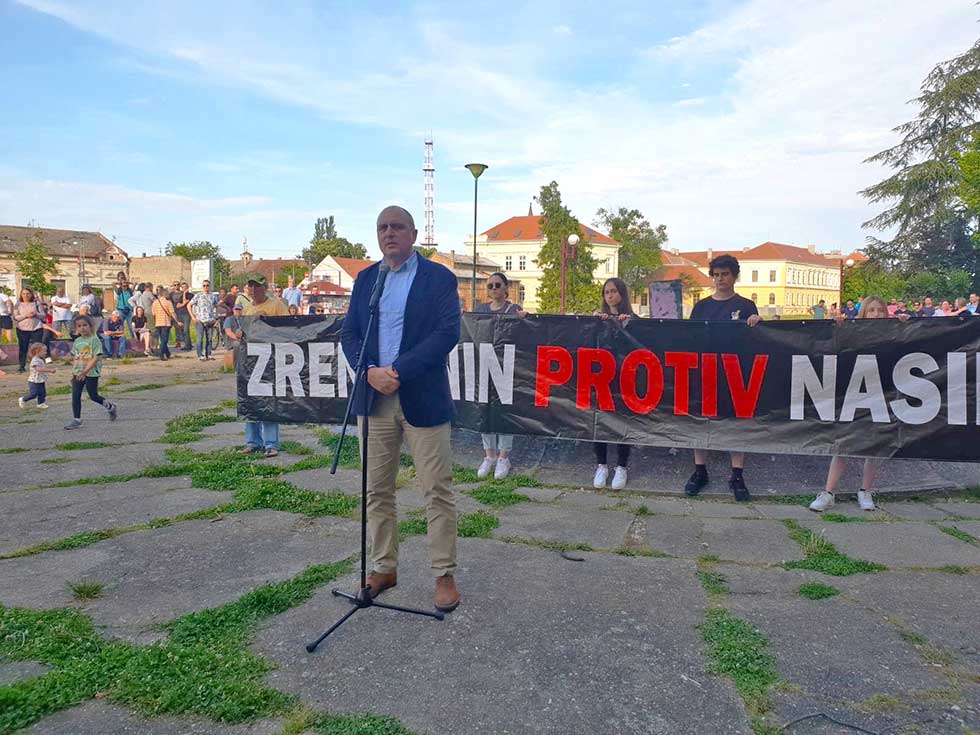 Predsednik Udruženih sindikata Srbije „Sloga“ Željko Veselinović i profesorka Beogradskog univerziteta Ljiljana Tomović obratili su se učesnicima današnjeg, petog po redu protestnog skupa „Zrenjanin protiv nasilja“, održanog u našem gradu.
