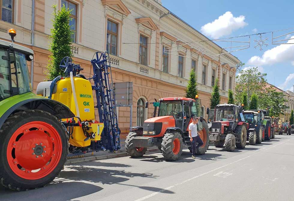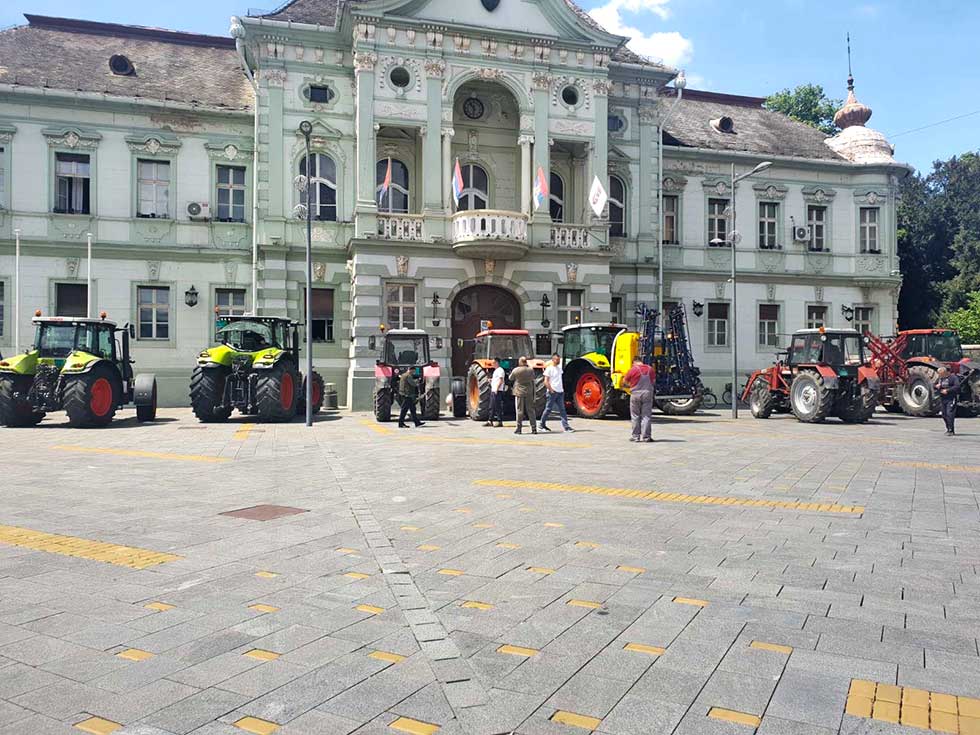 Grupa poljoprivrednika, nezadovoljnih odnosnom države prema njima, stigla je danas traktorima ispred Gradske kuće u Zrenjaninu.