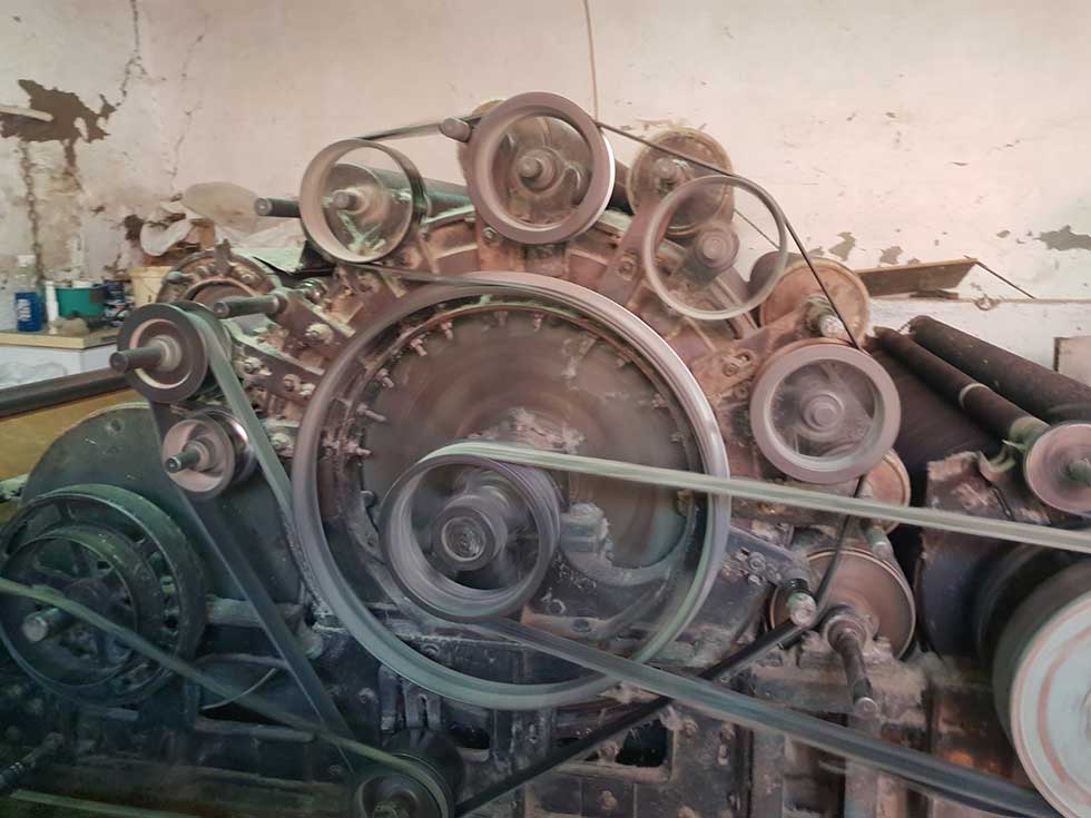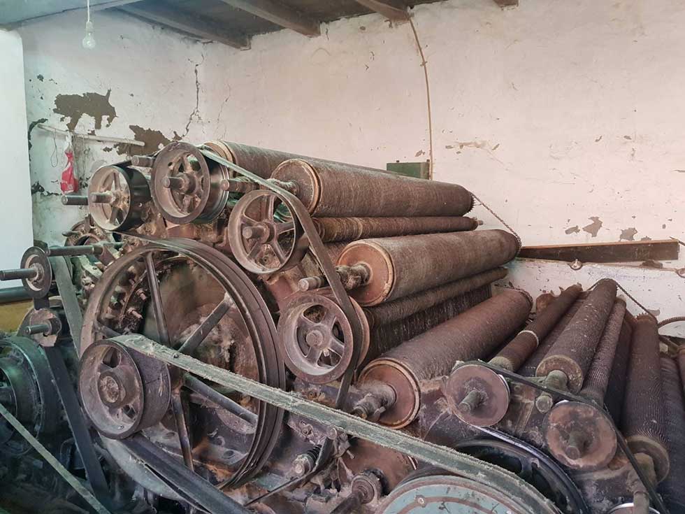 – Ova mašina na kojoj radim zove se vunovlačara. Na njoj se, baš kako joj ime kaže, vuna valja, sa nje se odstranjuju primese i biljna vlakna. Sastoji se od valjaka, koji imaju različite funkcije. Ti valjci se zovu radne tačke. Na prvom se ubačena vuna deli na dva pramena, pa redom razdvaja, do valjka koji se zove grebenar, na kom se vuna češlja. Mogao bih da vam održim čitavo predavanje ali, eto, od pramena na kraju izađe tabla čiste vune. Od nje se dalje prave dušeci, jorgani, a ako je vuna posebno kvalitetno i tanko izdrndana, može i da se uprede i od nje dalje prave odevni predmeti. Vuna je prirodan i jako kvalitetan materijal. Valjao sam i vunu koja je imala 50 godina a bila je odličnog kvaliteta – priča Orelj.