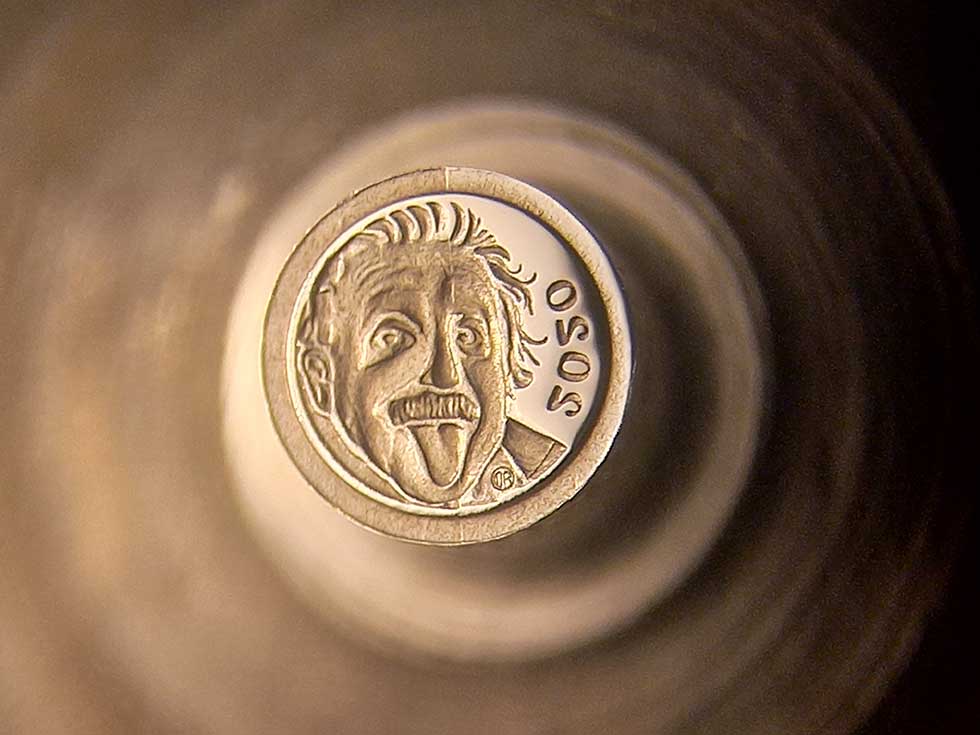 Kako sam iskovao najmanji novčić na svetu. Ovako bi se mogla zvati priča Zrenjaninca Milenka Topalova, koji je postavio Ginisov rekord, iskovavši najmanju repliku zlatnika na svetu, i to sa likom Alberta Ajnštajna.