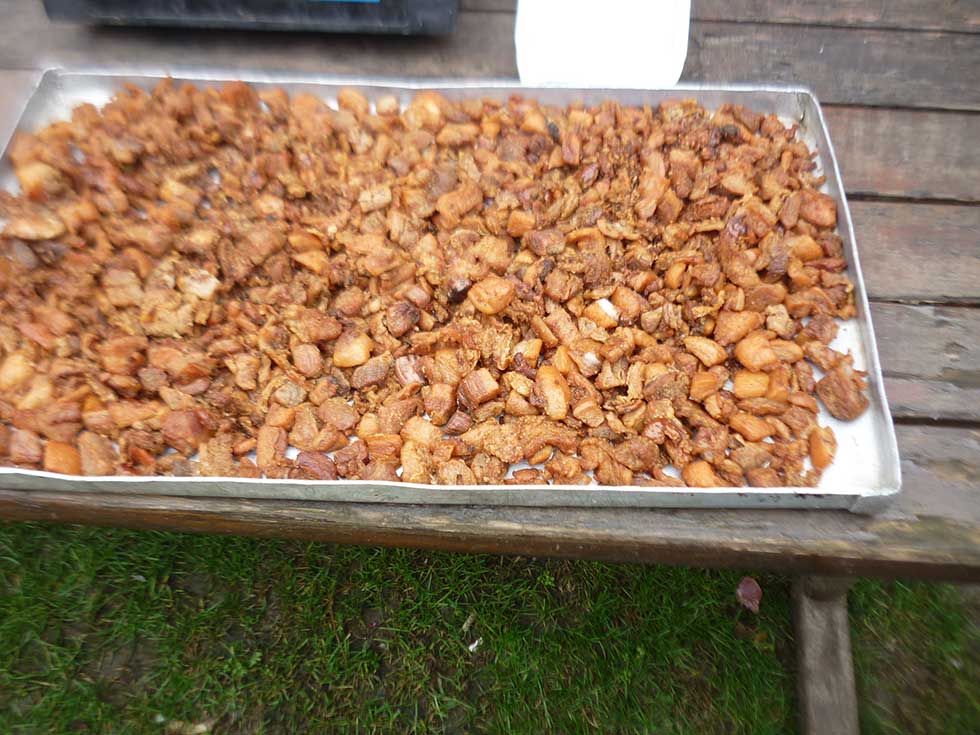Sve po redu našlo se na trpezi – od kožure, čvaraka, obare, gronika sa paprikom, paumfleka, hrskavo pečene sveže slanine, džigerice sa belim lukom i ficle sa turšijom, pa sve do friških kobasica i večernjeg paprikaša, kao finalnog menija. Svakako, sve to praćeno je rakijom i domaćim vinom. Od poslastica, bili su dostupni salčići, pogačice, štrudle sa makom, ludajnjače…