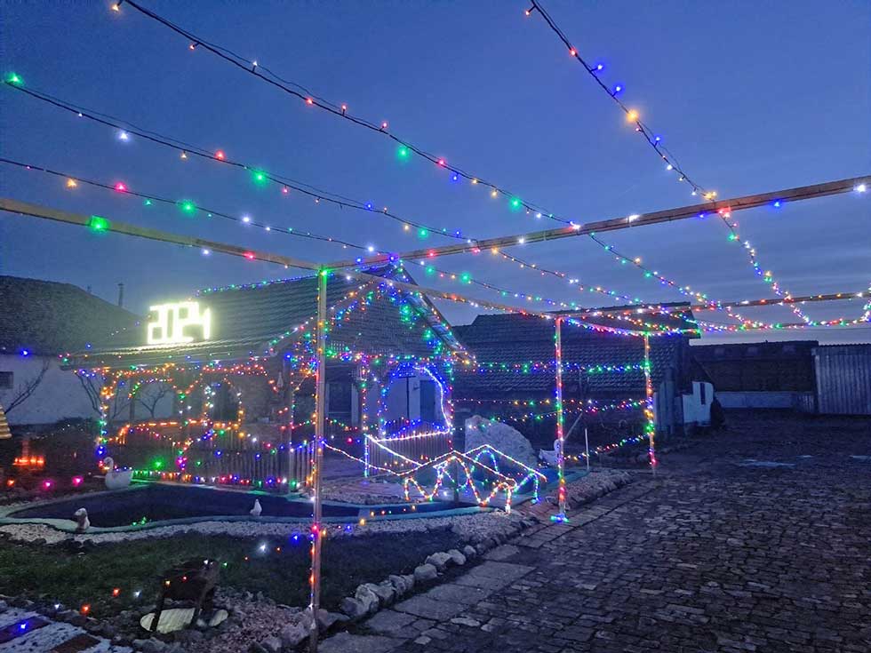 – Svaka sijalica mora da nađe svoje mesto. Još u toku leta osmislim kako će konačno izgledati novogodišnja dekoracija. Leti provodim mnogo vremena u dvorištu i zamišljam kako bi to moglo da izgleda. Kada zamislim, nacrtam, a onda se samo držim plana – objašnjava Jožef.