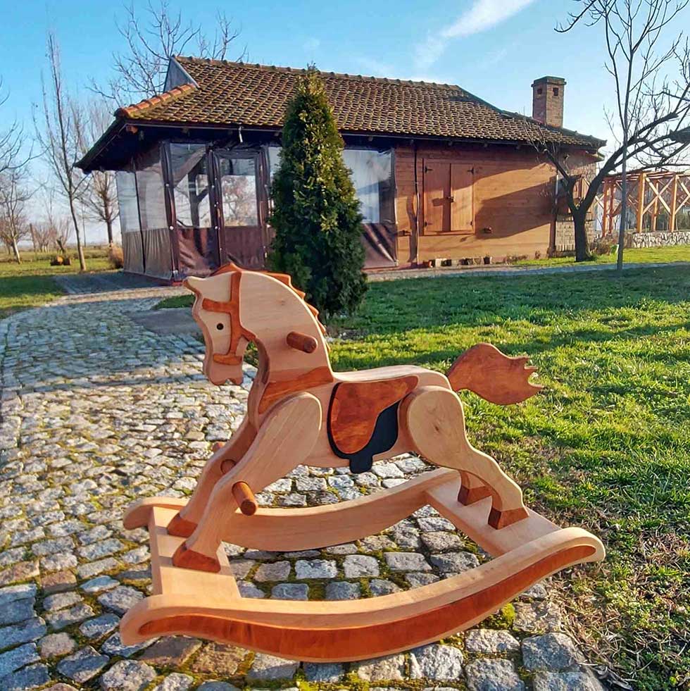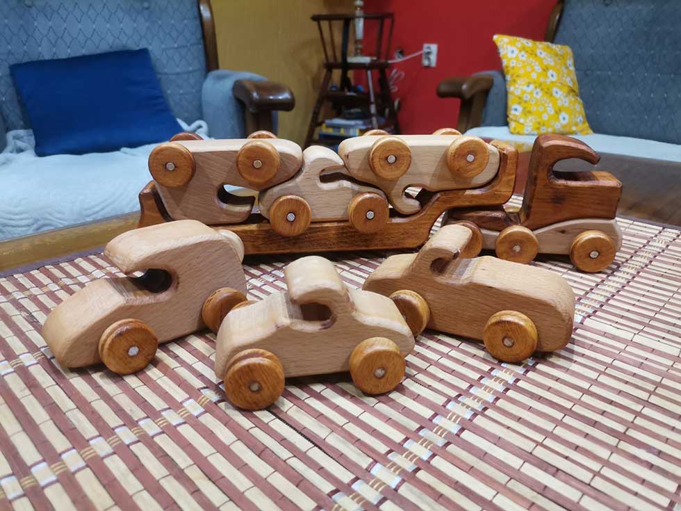 Ipak, u poslednje vreme odlučio se za dečije igračke. Svom sinu je napravio automobile, kamione, kipere, dizalice, brodove… I za decu prijatelja izradio je najlepše moguće poklone od drveta. Ponosan je na autobus koji je poklonio dečaku koji obožava autobuse. Za jedan dečiji vašar u selu, napravio je drveni fotoaparat za devojčice. Poslednji je iz Strahinjine radionice izašao drveni konjić, a sada se sprema da napravi i motocikl od drveta.