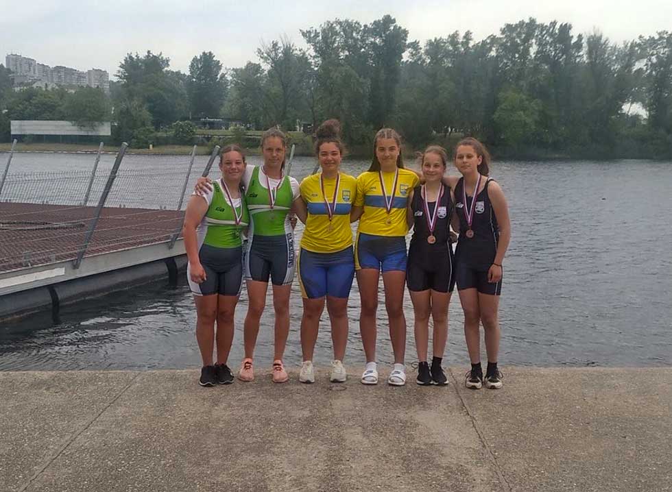 Snežana Jakovljević je sa koleginicom iz Danubiusa Anom Mirković osvojila zlatnu medalju u dubl skulu za seniorke, a Ines Jocić i Iva Kostin u dubl skulu za pionirke.